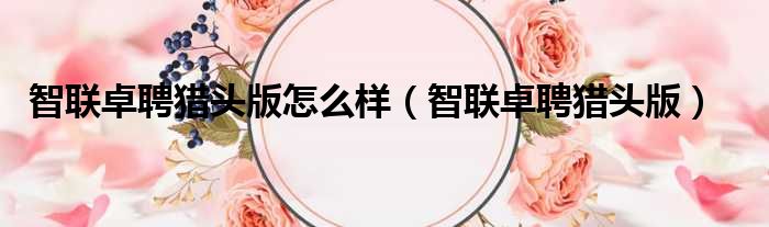 智联卓聘猎头版怎么样(智联卓聘猎头版)