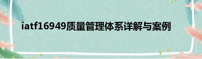 大家好,小活来为大家解答以上的问题。iatf16949质量管理体系详解与案例这个很多人还不知道,现在让我们一起来看看吧!