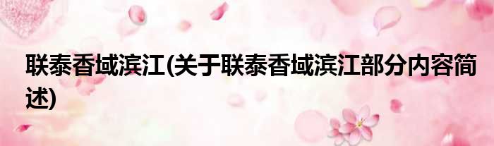 联泰香域滨江(关于联泰香域滨江部分内容简述)