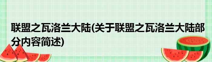 联盟之瓦洛兰大陆(关于联盟之瓦洛兰大陆部分内容简述)