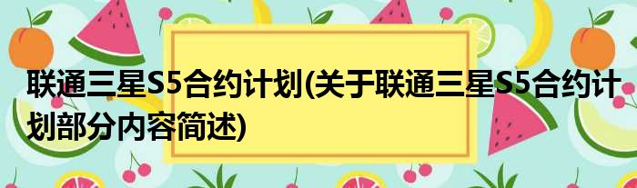 联通三星S5合约计划(关于联通三星S5合约计划部分内容简述)