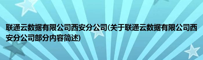 联通云数据有限公司西安分公司(关于联通云数据有限公司西安分公司部分内容简述)