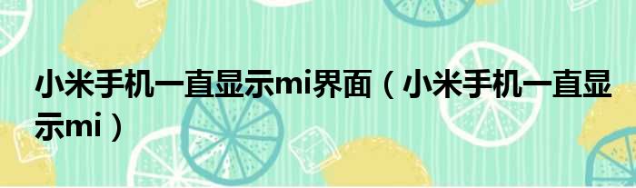 小米手机一直显示mi界面(小米手机一直显示mi)