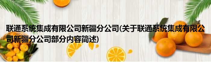 联通系统集成有限公司新疆分公司(关于联通系统集成有限公司新疆分公司部分内容简述)