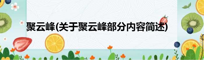 导读 大家好,今天小方来说说一篇关于聚云峰,关于聚云峰部分内容简述的文章,那么现在就为大家来简单介绍下,希望对各位小伙伴们有所帮助。