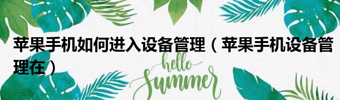 苹果手机如何进入设备管理(苹果手机设备管理在)