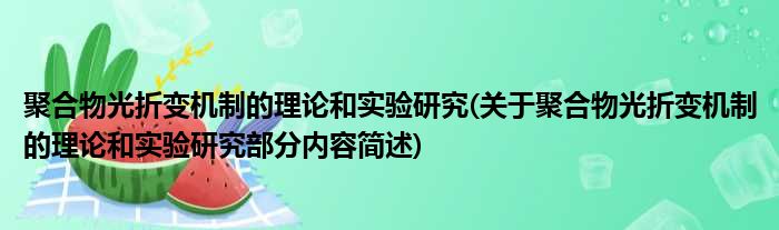 导读 大家好,今天小方来说说一篇关于聚合物光折变机制的理论和实验研究,关于聚合物光折变机制的理论和实验研究部分内容简述的文章,那么现在就