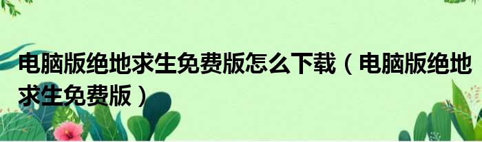 电脑版绝地求生免费版怎么下载(电脑版绝地求生免费版)