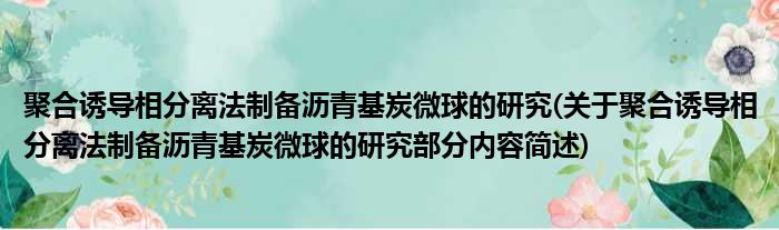 聚合诱导相分离法制备沥青基炭微球的研究(关于聚合诱导相分离法制备沥青基炭微球的研究部分内容简述)