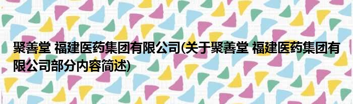聚善堂 福建医药集团有限公司(关于聚善堂 福建医药集团有限公司部分内容简述)