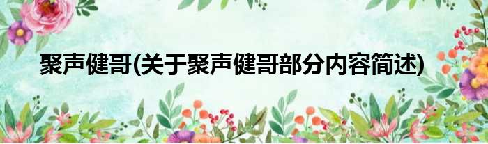 大家好,今天小方来说说一篇关于聚声健哥,关于聚声健哥部分内容简述的文章,那么现在就为大家来简单介绍下,希望对各位小伙伴们有所帮助。