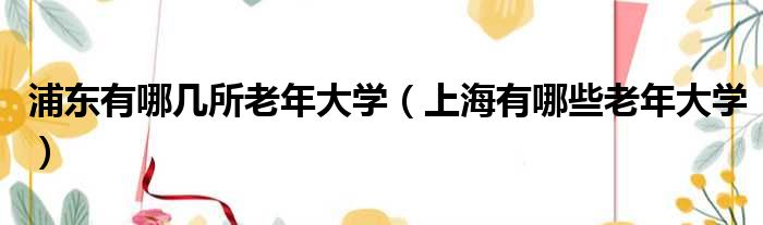 浦东有哪几所老年大学(上海有哪些老年大学)
