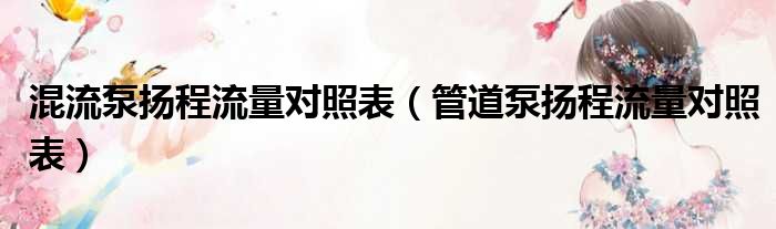 混流泵扬程流量对照表(管道泵扬程流量对照表)
