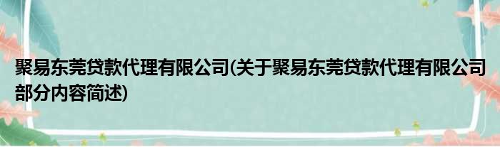 聚易东莞贷款代理有限公司(关于聚易东莞贷款代理有限公司部分内容简述)