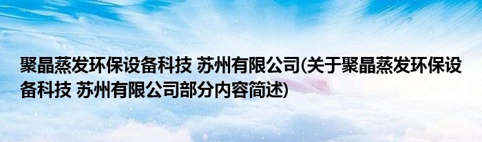 聚晶蒸发环保设备科技 苏州有限公司(关于聚晶蒸发环保设备科技 苏州有限公司部分内容简述)
