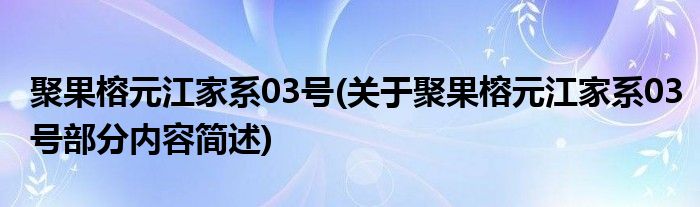 聚果榕元江家系03号(关于聚果榕元江家系03号部分内容简述)
