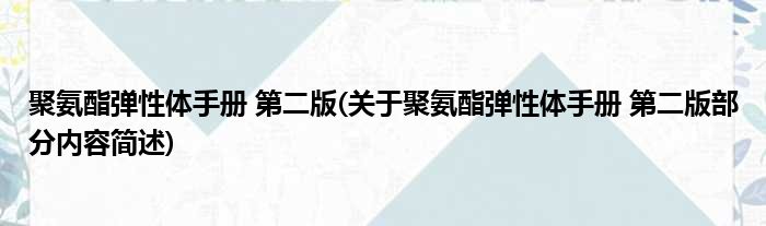 导读 大家好,今天小方来说说一篇关于聚氨酯弹性体手册 第二版,关于聚氨酯弹性体手册 第二版部分内容简述的文章,那么现在就为大家来简单介绍