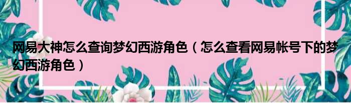 网易大神怎么查询梦幻西游角色(怎么查看网易帐号下的梦幻西游角色)