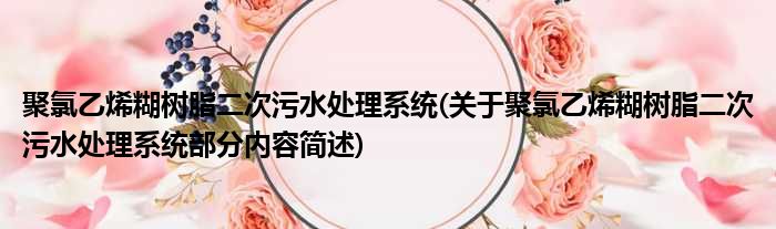 聚氯乙烯糊树脂二次污水处理系统(关于聚氯乙烯糊树脂二次污水处理系统部分内容简述)