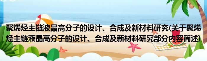 导读 大家好,今天小方来说说一篇关于聚烯烃主链液晶高分子的设计、合成及新材料研究,关于聚烯烃主链液晶高分子的设计、合成及新材料研究部分内