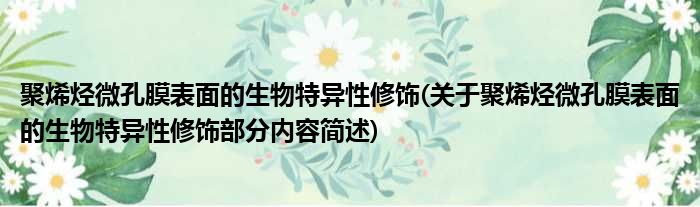 聚烯烃微孔膜表面的生物特异性修饰(关于聚烯烃微孔膜表面的生物特异性修饰部分内容简述)