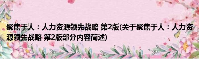 聚焦于人:人力资源领先战略 第2版(关于聚焦于人:人力资源领先战略 第2版部分内容简述)