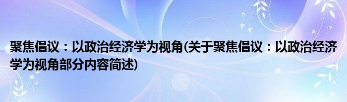 聚焦倡议:以政治经济学为视角(关于聚焦倡议:以政治经济学为视角部分内容简述)