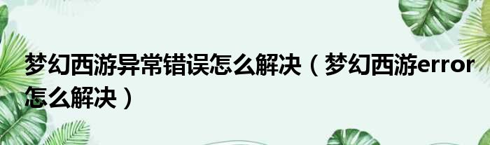 梦幻西游异常错误怎么解决(梦幻西游error怎么解决)