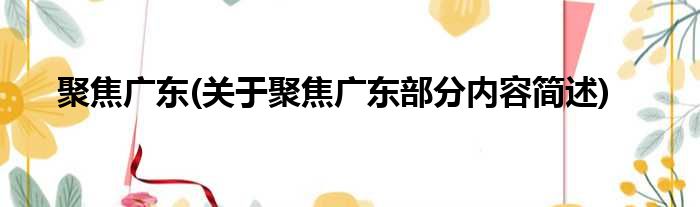 导读 大家好,今天小方来说说一篇关于聚焦广东,关于聚焦广东部分内容简述的文章,那么现在就为大家来简单介绍下,希望对各位小伙伴们有所帮助。