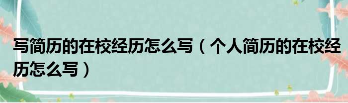 写简历的在校经历怎么写(个人简历的在校经历怎么写)