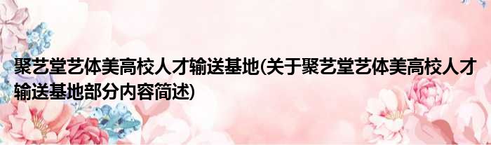 聚艺堂艺体美高校人才输送基地(关于聚艺堂艺体美高校人才输送基地部分内容简述)