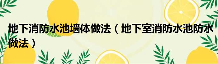 地下消防水池墙体做法(地下室消防水池防水做法)