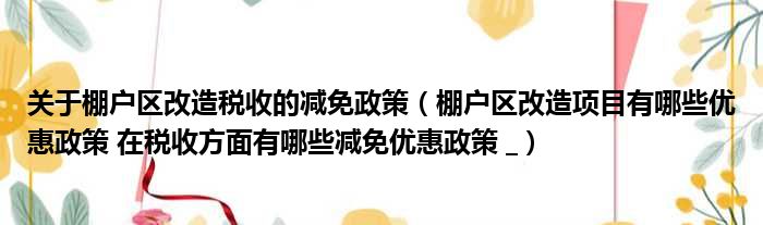 关于棚户区改造税收的减免政策(棚户区改造项目有哪些优惠政策 在税收方面有哪些减免优惠政策 _)