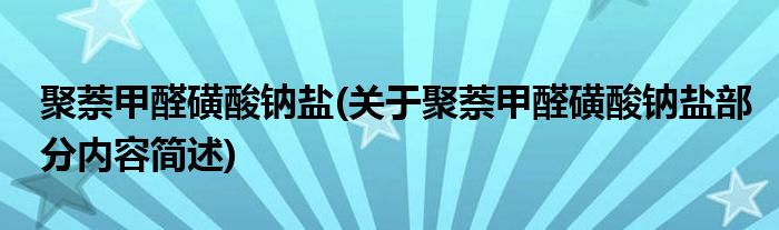 聚萘甲醛磺酸钠盐(关于聚萘甲醛磺酸钠盐部分内容简述)