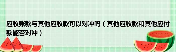 应收账款与其他应收款可以对冲吗(其他应收款和其他应付款能否对冲)
