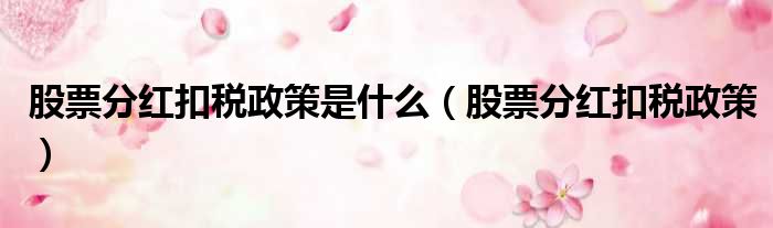 大家好,小活来为大家解答以上的问题。股票分红扣税政策是什么,股票分红扣税政策这个很多人还不知道,现在让我们一起来看看吧!