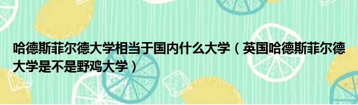 哈德斯菲尔德大学相当于国内什么大学(英国哈德斯菲尔德大学是不是野鸡大学)