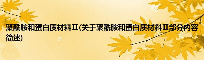 聚酰胺和蛋白质材料Ⅱ(关于聚酰胺和蛋白质材料Ⅱ部分内容简述)