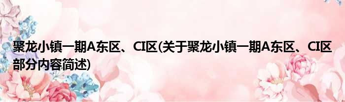 聚龙小镇一期A东区、CI区(关于聚龙小镇一期A东区、CI区部分内容简述)