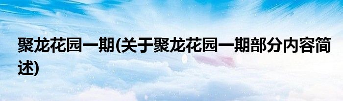 聚龙花园一期(关于聚龙花园一期部分内容简述)