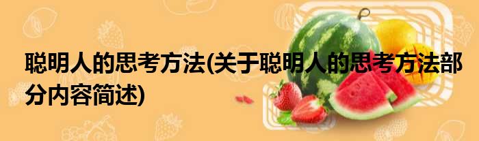 聪明人的思考方法(关于聪明人的思考方法部分内容简述)