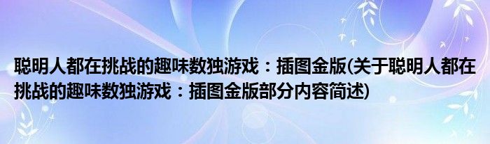 聪明人都在挑战的趣味数独游戏:插图金版(关于聪明人都在挑战的趣味数独游戏:插图金版部分内容简述)