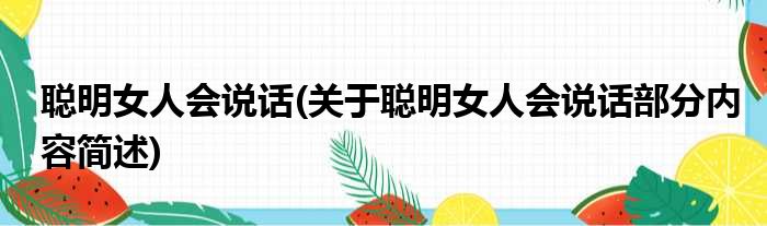 聪明女人会说话(关于聪明女人会说话部分内容简述)