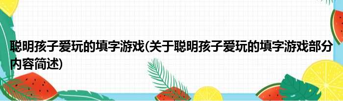 聪明孩子爱玩的填字游戏(关于聪明孩子爱玩的填字游戏部分内容简述)
