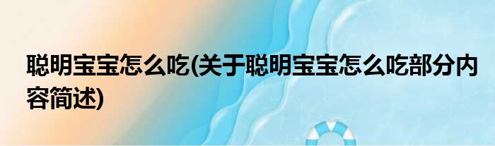 聪明宝宝怎么吃(关于聪明宝宝怎么吃部分内容简述)
