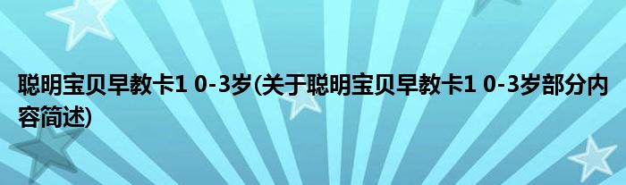 导读 大家好,今天小方来说说一篇关于聪明宝贝早教卡1 0-3岁,关于聪明宝贝早教卡1 0-3岁部分内容简述的文章,那么现在就为大家来简单介绍下,