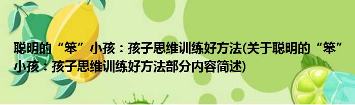导读 大家好,今天小方来说说一篇关于聪明的“笨”小孩:孩子思维训练好方法,关于聪明的“笨”小孩:孩子思维训练好方法部分内容简述的文章,那