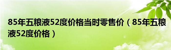 85年五粮液52度价格当时零售价(85年五粮液52度价格)