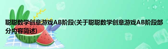 聪聪数学创意游戏AB阶段(关于聪聪数学创意游戏AB阶段部分内容简述)