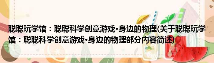 导读 大家好,今天小方来说说一篇关于聪聪玩学馆:聪聪科学创意游戏·身边的物理,关于聪聪玩学馆:聪聪科学创意游戏·身边的物理部分内容简述的